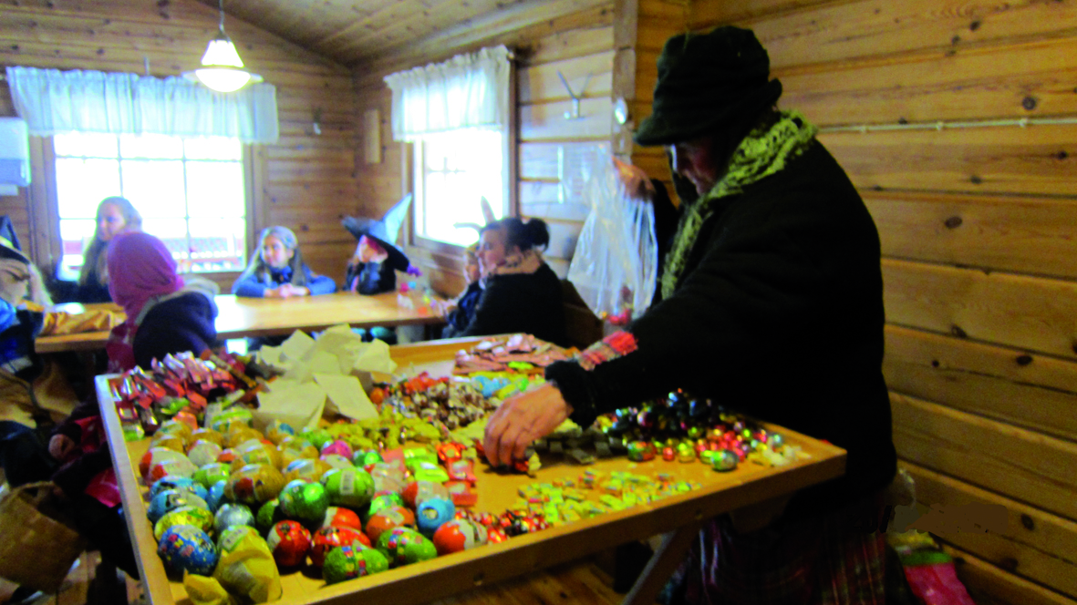 Pääsiäisnoita ja -pupu jakavat lapsille makeisia ja toimivat kilpailutuomareina.