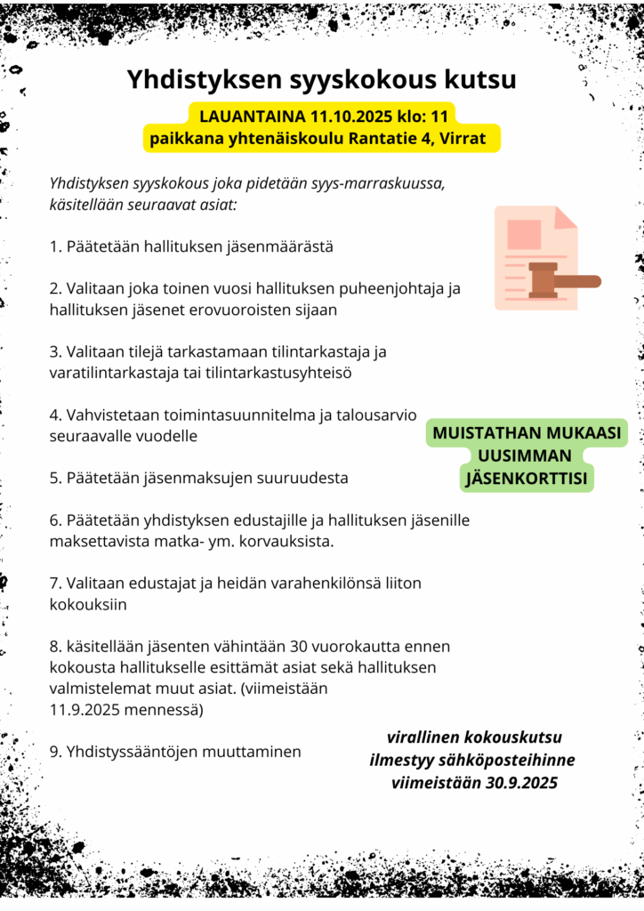 Yhdistyksen syyskokous 2025