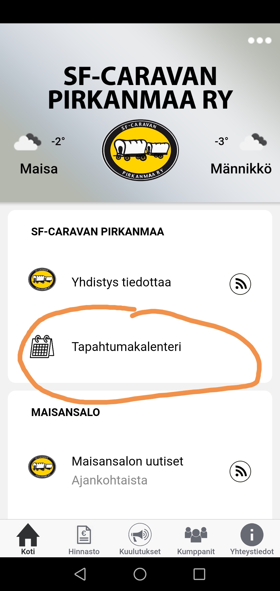 Kalenteriin pääset sfcpirkanmaa.fi etusivulta.