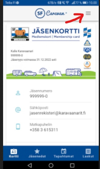 Toinen vaihtoehto tietojen tarkistamiseen / päivittämiseen on Caravan mobiilijäsenkortti.